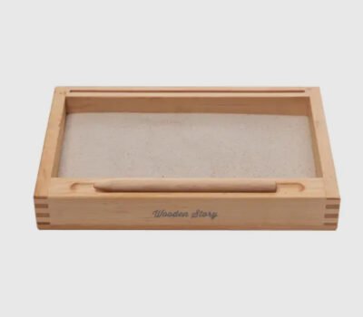 - Bac à sable Montessori en bois pour s'entraîner à écrire des lettres, des chiffres et des formes, à associer des objets à des flashcards, à créer des mots complets. Pour ce faire, l'enfant utilise un doigt ou le crayon en bois inclus. Marquage CE.